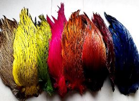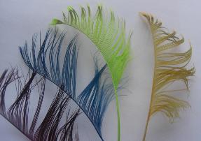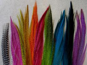 | When tying tube flies we are often faced with an ongoing problem. Feathers that would normally work well on a hooked pattern are often too small to accommodate the thickness of a tube. The most common example of this would be to think of a palmered schlappen feather. On a size 2/0 hook a standard feather would be fine, when you put it on a diameter of tube that is often 3 or 4 times as thick as a hook into the equation, that same schlappen feather now needs to be much bigger and longer. This is often the frustration that most beginner tube tyers face....."running out" of feather before the fly is finished! We have spent the last few years locating many sources of premium feathers more suitable for tubes. |