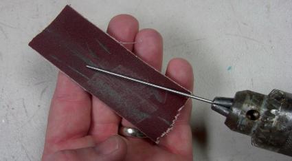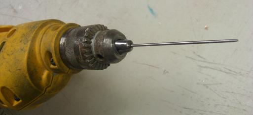 | Place the tapered pin blank in the chuck, tighten it up and you are ready to grind down the taper on the pin. You want to move the pin back and forward on the angle to create the smooth transition. Be sure to continuously check the taper on your favourite tube so you don't grind too much away! |
