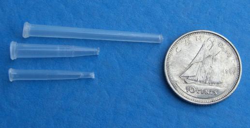| The late Juri Shumakov discovered these a few years ago. They are unique in that they allow a large profile fly while still maintaining a small head like a traditional hooked pattern.. All Tapered Tubes come complete with a length of clear vinyl junction tube to secure your hook in place. |